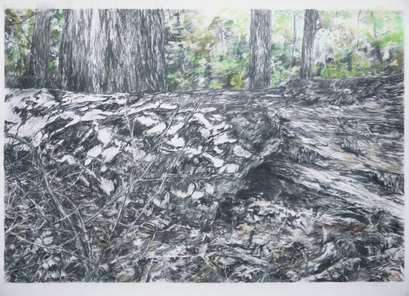 Het wilde bos (2013), houtskool en pastel op papier, 150 x 203 cm