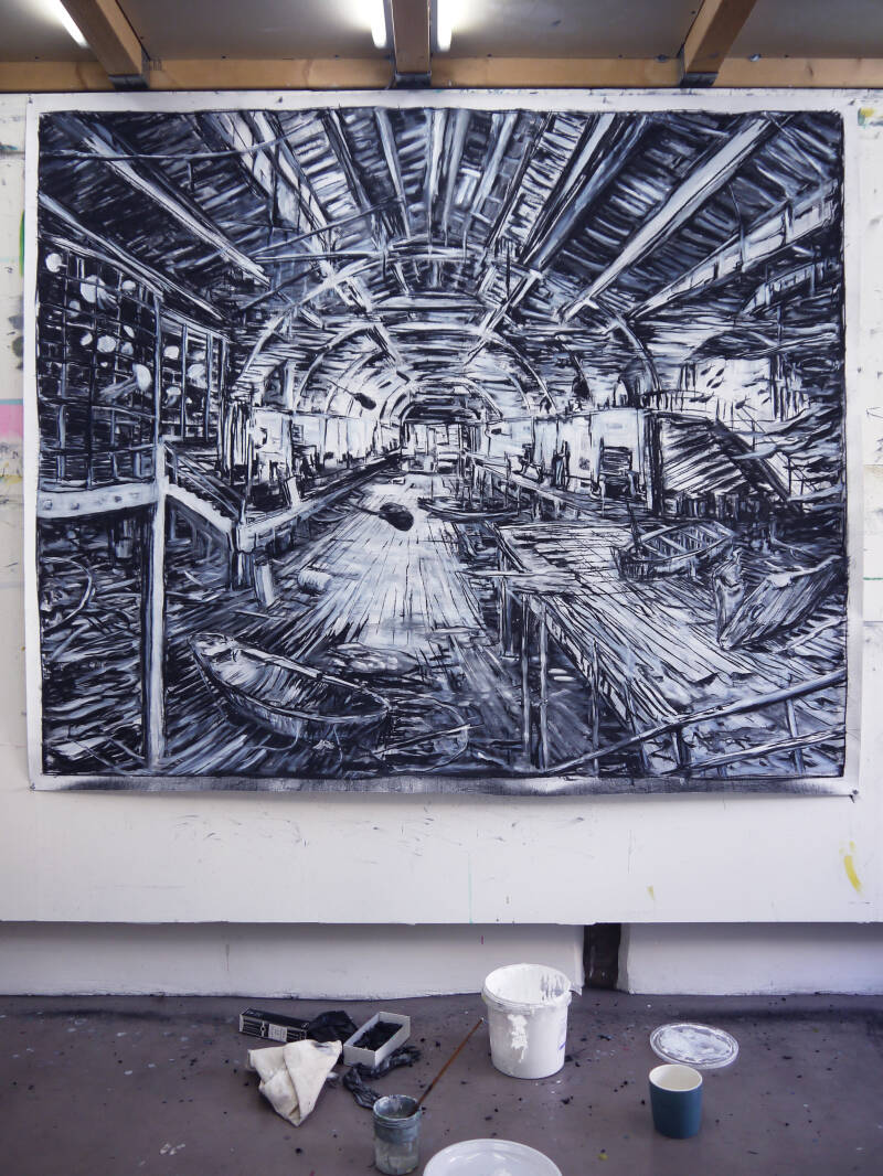 Turbinehal (2016), houtskool en pastel op papier, 150 x 110 cm